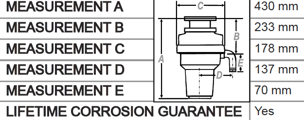Replaces: WasteKing 2625TC, WasteKing 3125BF, WasteKing 5025, WasteMaid 278BF, WasteMaid 255BF, Commander 7500BF